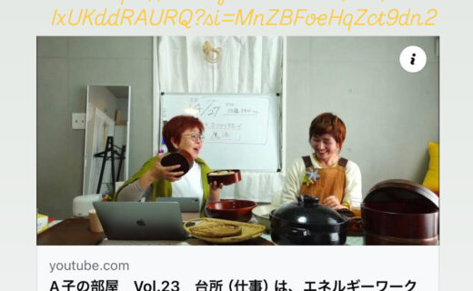 YouTube出演『台所(仕事)はエネルギーワーク 』A子の部屋