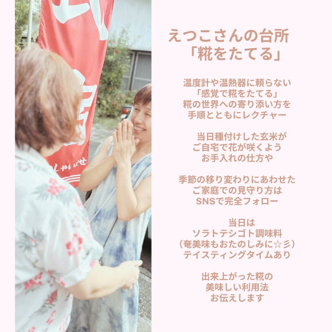 ・当日種付けした玄米がご自宅で糀の花が咲くよう手入れの仕方などお問い合わせに随時お応えします